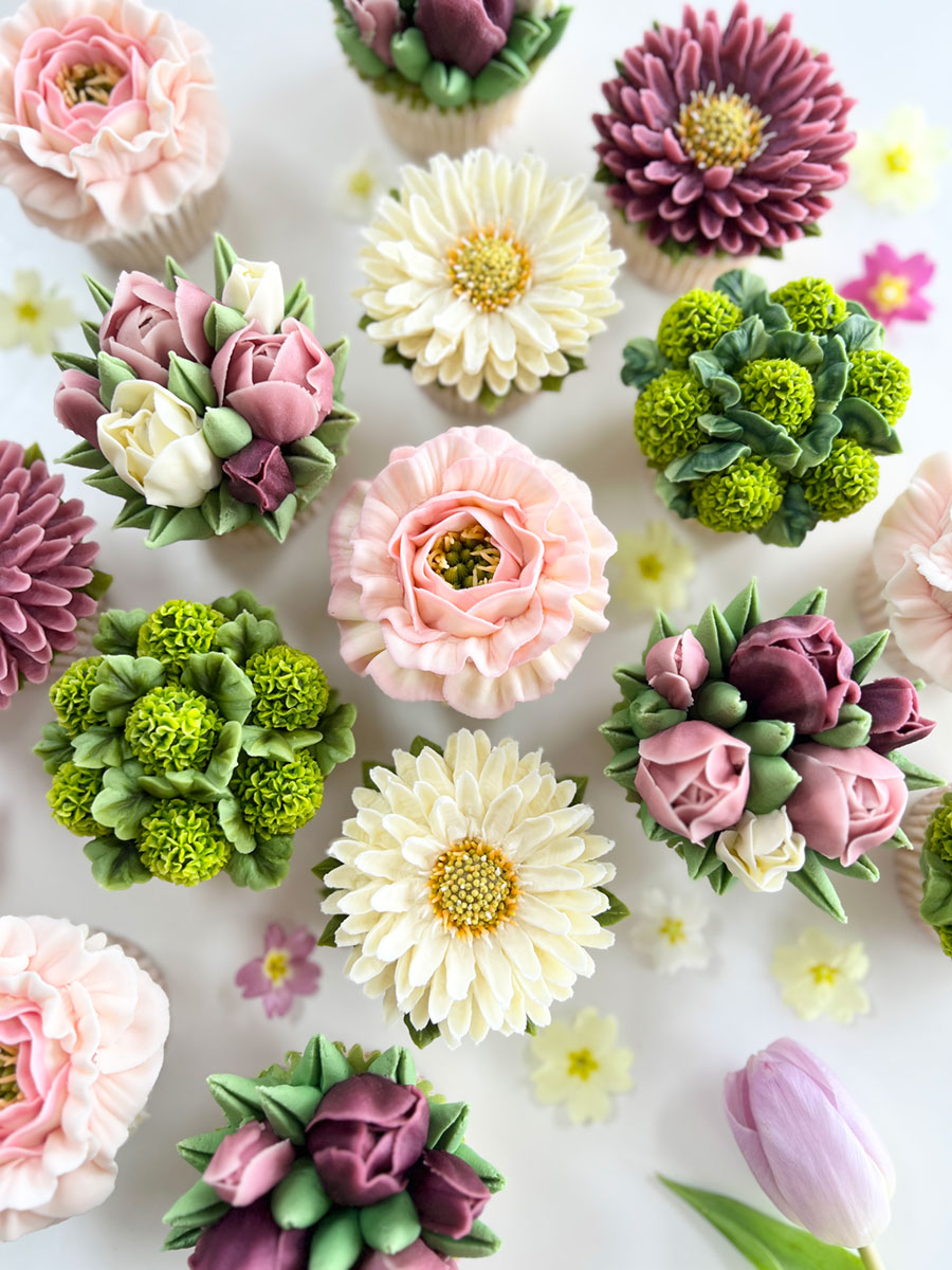 This gorgeous group of florals has been designed to offer something alternative to the spring and summer season of edible art. Learn a new gorgeous Spring Rose, team it with some Alchemilla Mollis, some pretty hand piped Tulips and a gorgeous Michaelmas Daisy. What’s not to love, stand out from the crowd and add these new blooms to your repertoire. All of the content for this course is listed below.